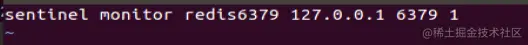 在文件sentinel.conf 中填写: sentinel monitor 被监控数据库名字(自己起名字) 127.0.0.1 6379 1