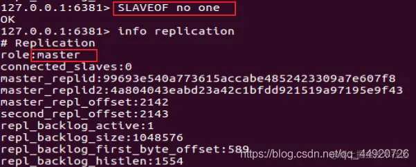 从机6381输入命令 SLAVEOF no one 使当前数据库停止与其他数据库的同步,转成主数据库