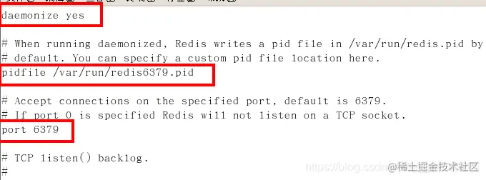 开启daemonize yes 修改pid 文件名字 指定端口为6379