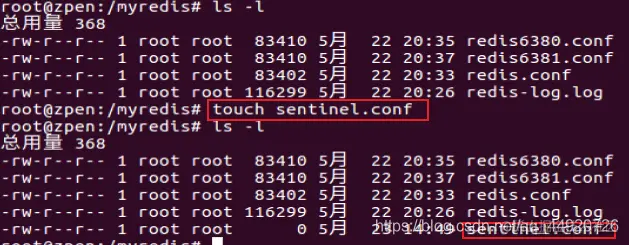 自定义的/myredis目录下新建sentinel.conf文件,名字绝不能错