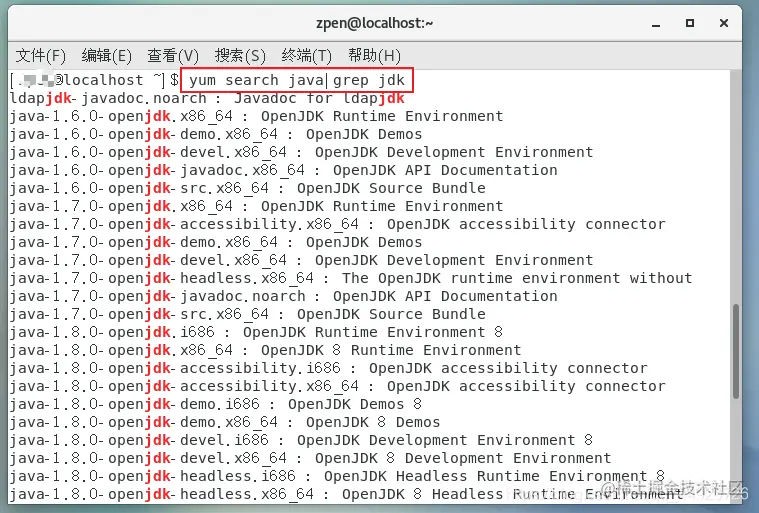 使用命令下面命令搜索 jdk 安装包