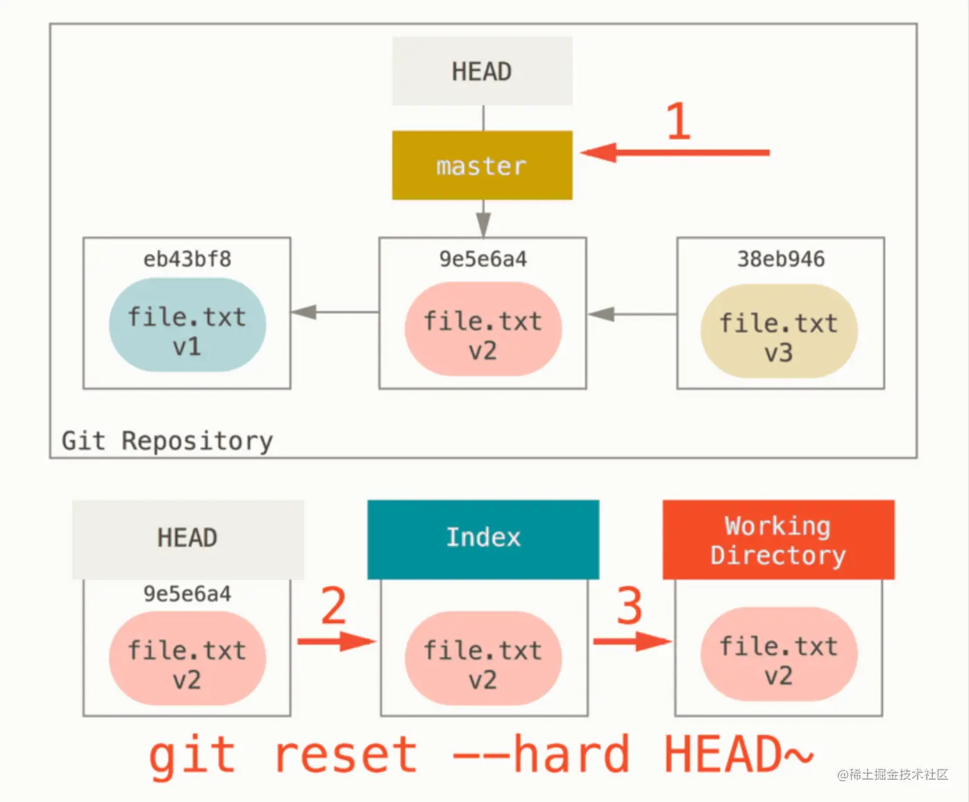 git reset --hard HEAD~ 总共有三个步骤