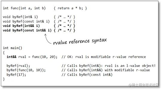 不要混淆右值引用, 既然它是一个具名对象, 那么它实际上是一个左值表达式! 这也是为什么调用 byRef(rval) 实际上是调用了 byRef(int&) 的原因.