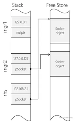 Socket 在构造函数中创建, 在析构函数中释放. 拷贝构造函数和赋值操作符中实现了深拷贝. 但是某些场景下, 拷贝对象并不是一个很好的方案. 这会创建, 拷贝, 销毁临时对象, 有一定的代价. 比如: