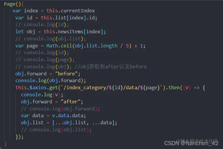 这时就可以直接判断它里面的forward值是不是等于after?如果是,就直接算在首页中也就直接return掉,如果不是首页那么就获取分页数据