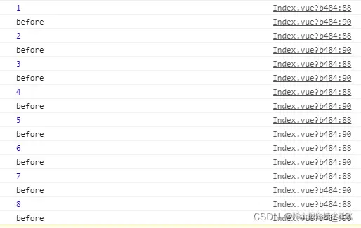 可以看到,当点击手机页面时会获取一个数据,里面有之前的before状态以及list空列表