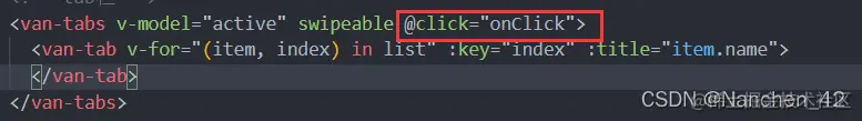 当点击tab栏是出现获取数据,因为vant中自带了name属性用来接收索引所以这里直接拿name即可