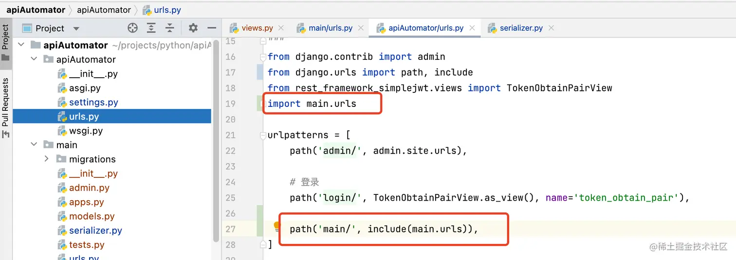 main/view.py定义项目列表View并使用ProjectsSerializer