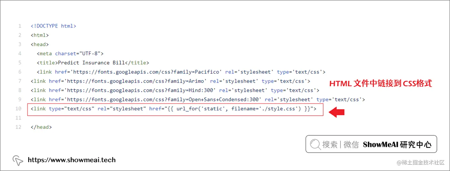 很多 Web 应用程序的前端都是使用 HTML 构建的,我们在本篇内容中不会深入讲解前端相关的内容。为了构建一个输入表单(以接收用户实时预估时输入的字段取值),我们基于一个基本的 HTML 模板完成前端网页,然后包含一个 CSS 样式表。