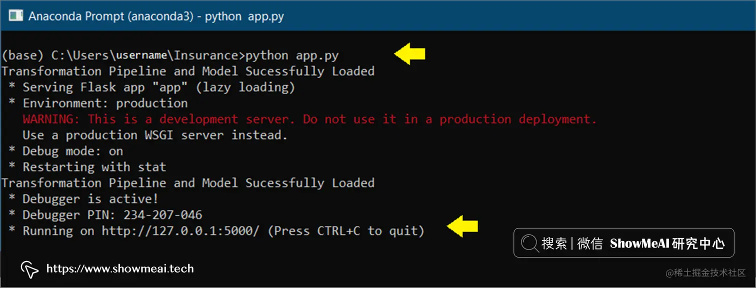在云端部署之前,我们需要在本地测试应用是否正常工作。我们在命令行运行 python app.py:
