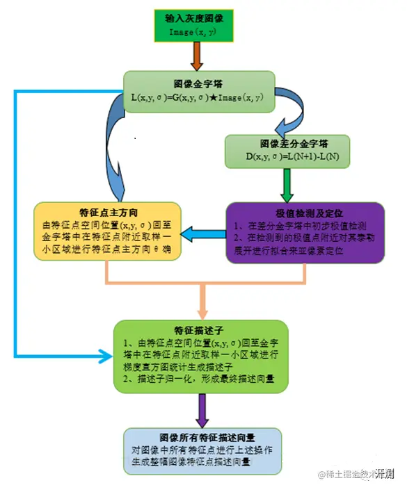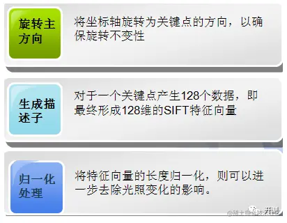 通过对关键点周围图像区域分块,计算块内梯度直方图,生成具有独特性的向量,这个向量是该区域图像信息的一种抽象,具有唯一性。