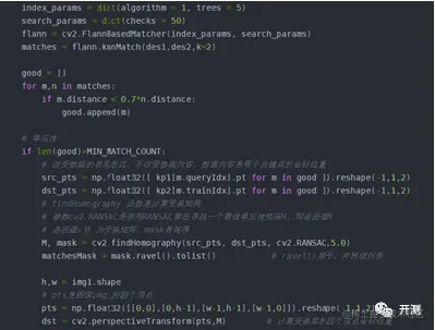 我们可以使用cv2.findHomography()函数如果将这两幅图像中的特征点集传给这个函数,他就会找到这个对象的透视图变换。