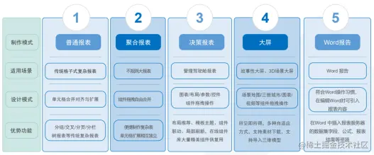 这是一款只需通过拖拉拽就能实现报表可视化的工具,类EXCEL的设计,不需要业务懂技术懂代码也能很快上手。还根据业务人员常见的报表场景,提供了5种报表设计模式,满足业务人员的日报、周报、月报需求。