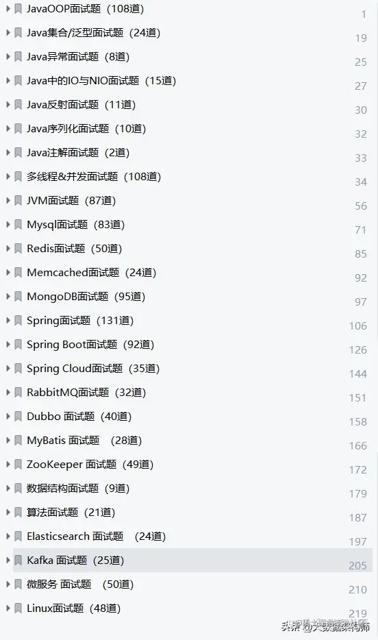 我就很坦率的告诉大家,靠的正是阿里P8面试官从内部爆出来的java面试题,总结的很全面,从Java基础语法、集合、异常、反射,到多线程,JVM,MySQL,redis,spring,springboot,springcloud,中间件,算法,zookeeper,kafka,微服务等等总共1031道;