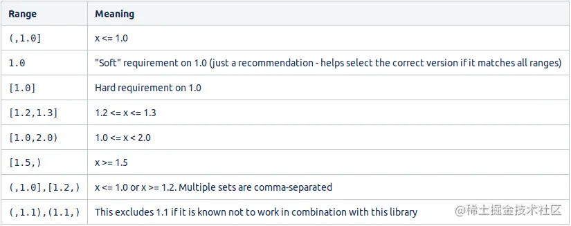 最近为了引入一个包,在这个包的使用上看到了定义的依赖的一个版本号定义方式。