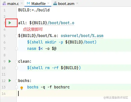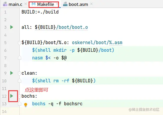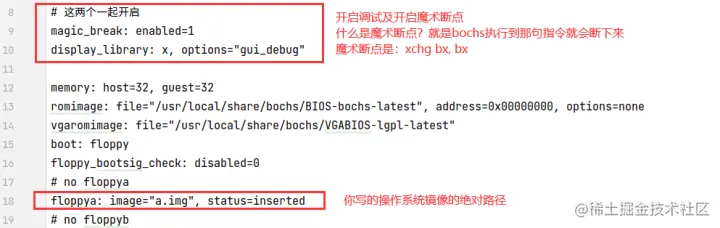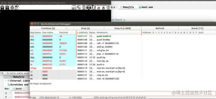 这里我略过了bochs的配置,你执行bochs -q试下就晓得了,很简单,不多言。