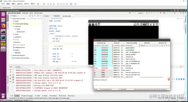 - 运行虚拟机1:bochs2.7(用来单步调试汇编)