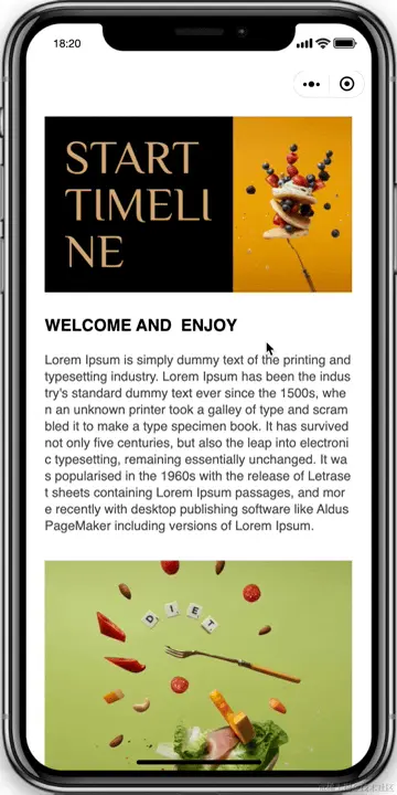 如何使用Towify配置图文的垂直滚动? TOWIFY 2022-09-19 120 阅读1分钟 本文将教大家如何实现图文的垂直滚动。 效果展示: 前置准备: 需展示的图文素材 将图文素材放入同一 容器 进行排布 (图文素材容器的高度需超过垂直滚动容器的高度) 具体步骤 : 添加 垂直滚动容器 配置链接滚动内容 步骤分解 : 添加垂直滚动容器 1.1 配置链接滚动内容 1.2 点击 LINK 按钮 1.3 拖拽锚点链接滚动内容 现在就可以实现图文的垂直滚动了。