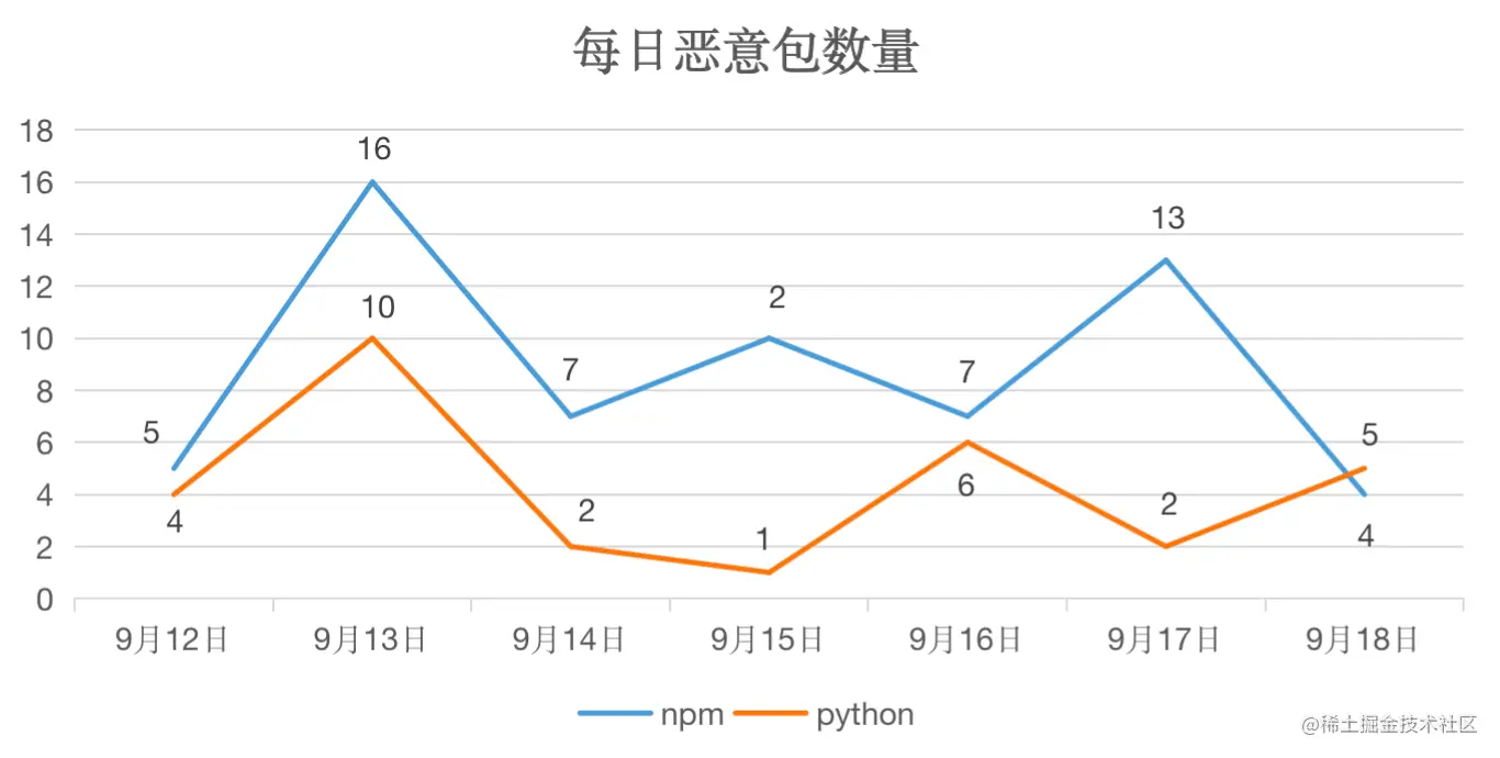 OSCS针对 NPM 、PyPI仓库监测的恶意组件数量如下所示。