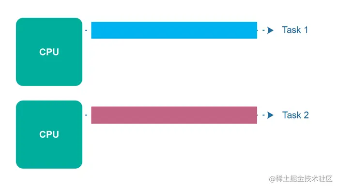 并行执行是指计算机具有多个 CPU 或 CPU 内核,并同时在多个任务上取得进展。但是,并行执行并不是指与并行性相同的现象 。稍后我将回到并行性。并行执行如下图所示: