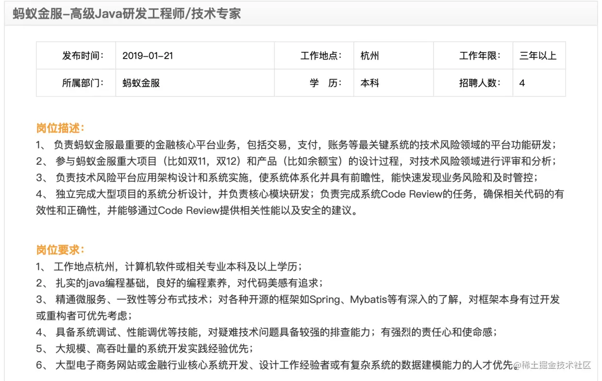 由于不同部门的业务侧重点存在差异,即便是同样类型的岗位,具体的要求往往也相差甚远。以Java工程师为例,以下是几个不同部门的岗位要求: