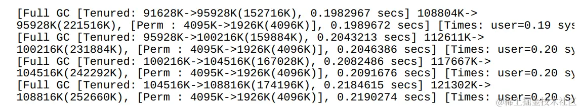 从加粗的部分可知,每当常量池饱和时,执行FullGC总能顺利回收常量池中的数据,确保程序稳定、持续地运行。