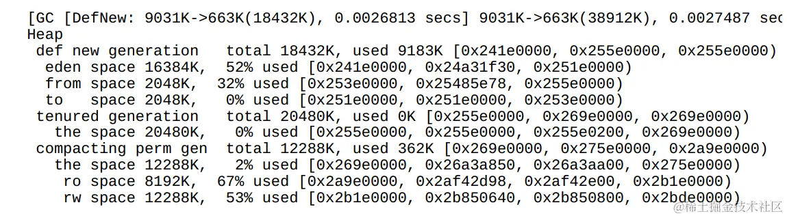 使用JVM参数“-XX:+PrintGCDetails-XX:SurvivorRatio=8-XX:MaxTenuringThreshold=15-Xms40M-Xmx40M-Xmn20M”运行这段代码,输出结果如下: