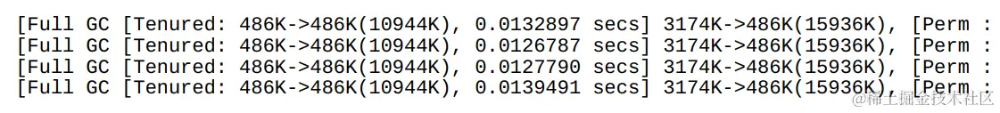 [FullGC7375K->7375K(12284K),0.0097149 secs]