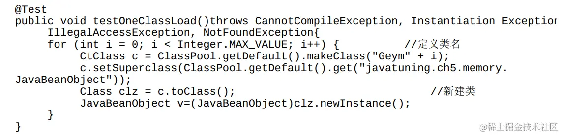 使用Javassist生成大量动态类,并尝试回收这些动态类的元数据,代码如下: