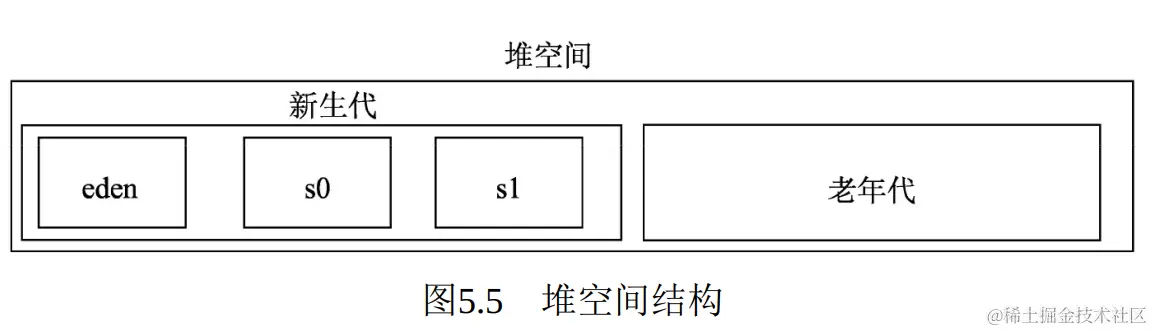注意:堆空间可以简单地分为新生代和老年代。新生代用于存放刚产生的新对象,老年代则存放年长的对象(存在的时间较长,经过垃圾回收的次数较多的对象)。