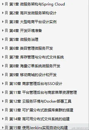 由于篇幅限制就只能以截图主要内容的形式为大家展示出来了,文章的末尾还有阿里微服务相关视频精讲教程。如果有朋友需要点此→Java思维导图 即可获取!