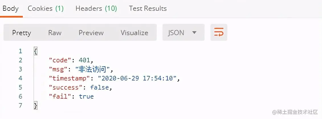 当用户未登录或者token解析失败时会触发这个处理器,返回一个非法访问的结果。