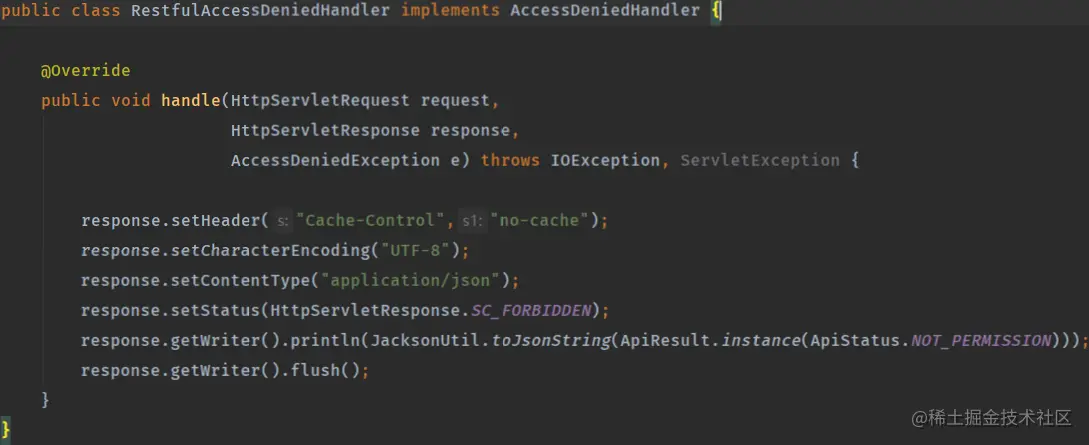 当用户本身权限不满足所访问API需要的权限时,触发这个处理器,返回一个权限不足的结果。