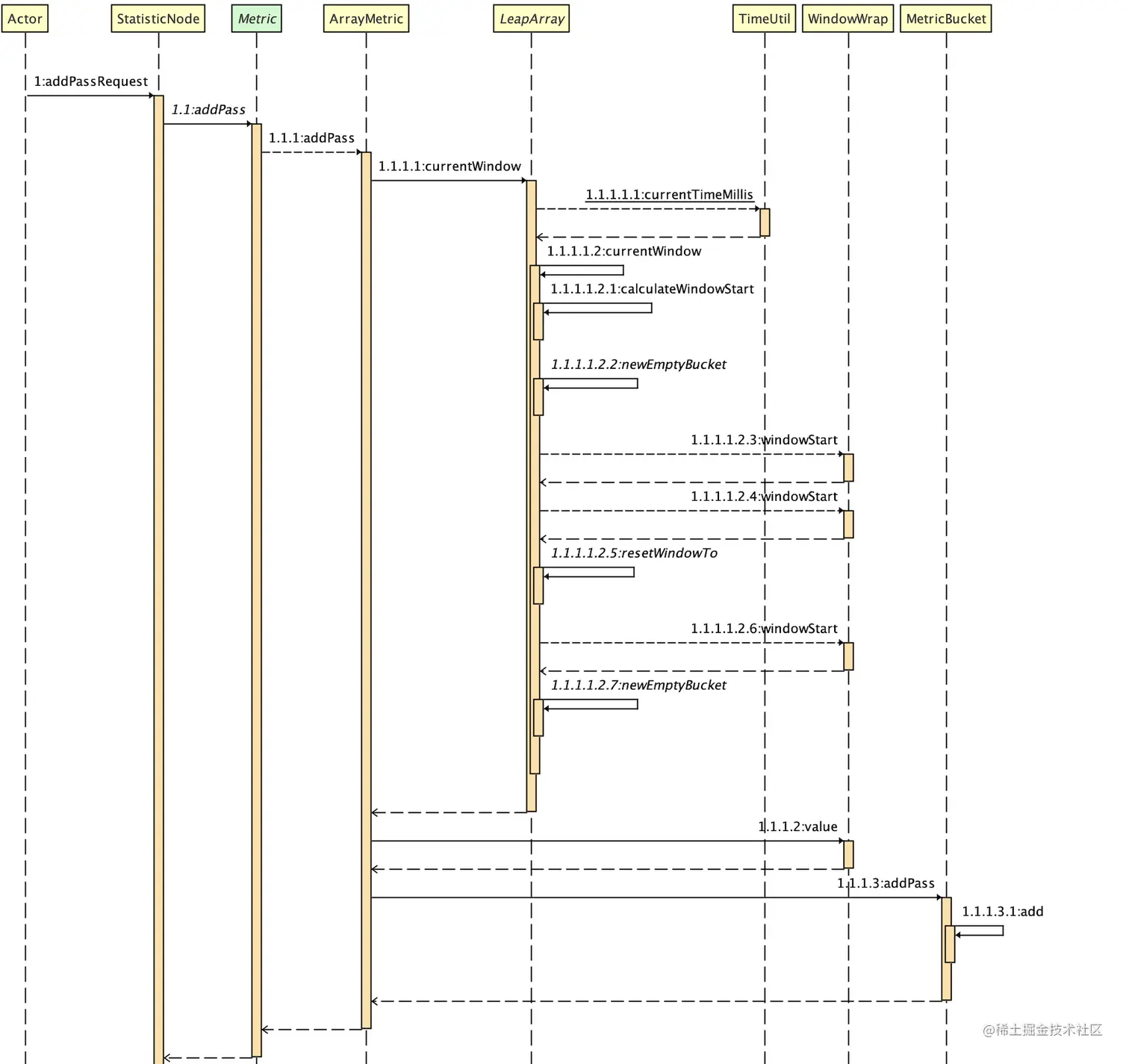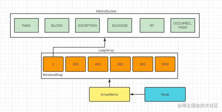 - ArrayMetric 对外提供计数功能类,底层通过持有LeapArray的对象实现计数。
