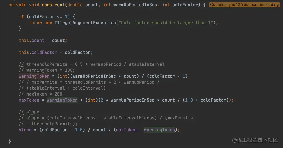 Sentinel实现WarmUp限流其实是参照Guava SmoothWarmingUp的实现,我们先看一下构造方法