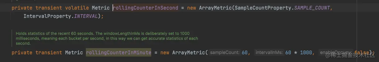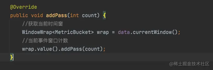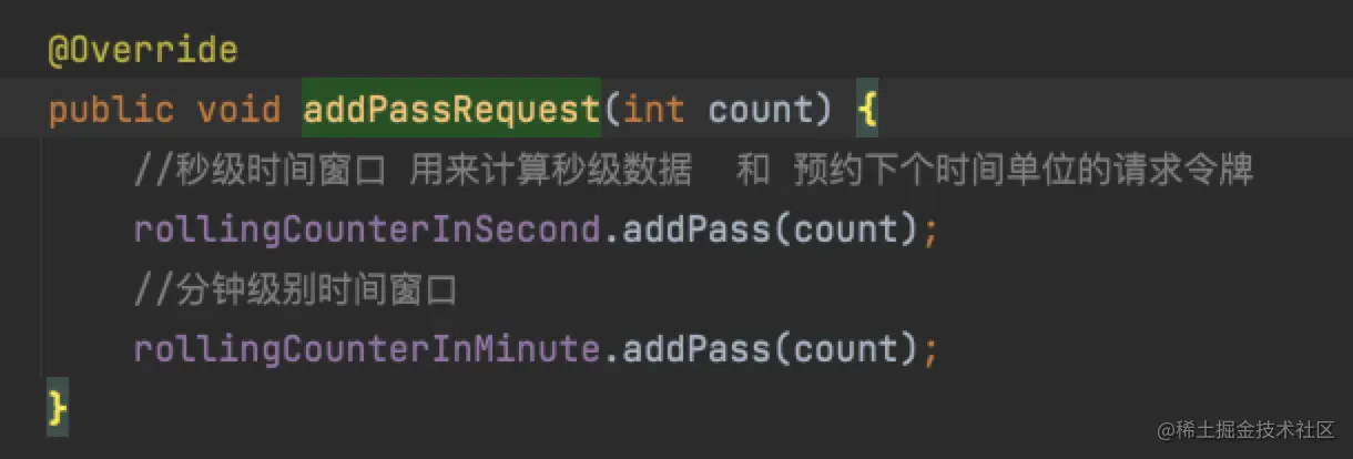 继续node.addPassRequest发现Sentinel计数时使用了两个滑动窗口计数,一个秒级别的和一个分钟级别的。秒级别的这个时间窗口使用的是LeapArray的子类OccupiableBucketLeapArray,这个了类在LeapArray的基础上支持预约抢占令牌(底层依赖于一个专门用作预约计数的滑动窗口)稍后我们会展开讲解预占过程。