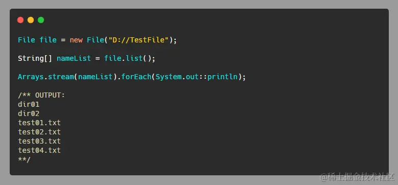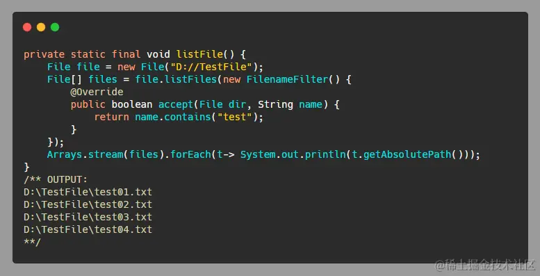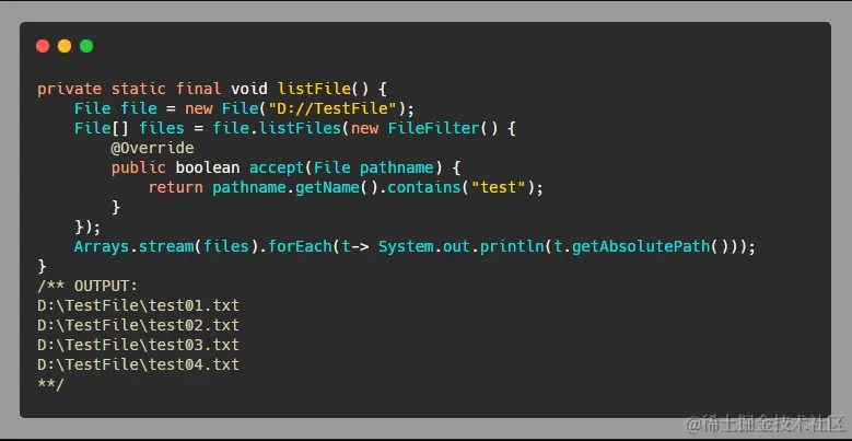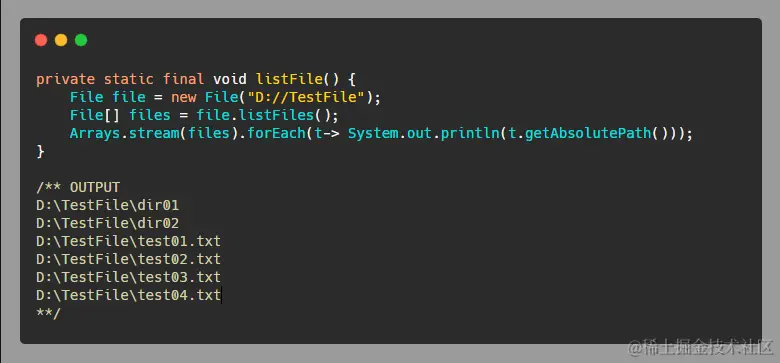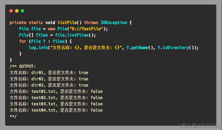 有了以上经验,我们不难猜到 listFiles() 的作用便是列出所有的文件列表: