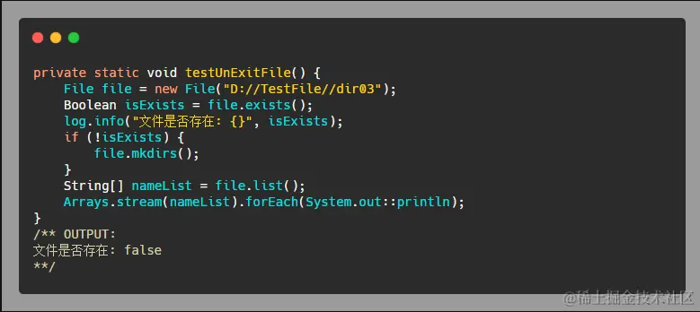 在图中我们可以看到两个我们没见过的API方法,分别是 exists() 和 mkdirs().