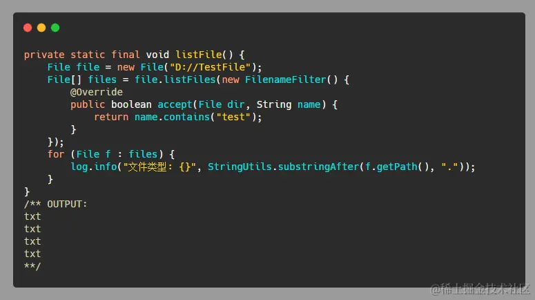 以上什么类型都获取到了,唯独少了个类型,虽然说 File 没有提供直接获取类型的方法,但是我们可以通过获取文件的全名,然后通过裁剪获取到文件的后缀,便可获取到文件的类型: