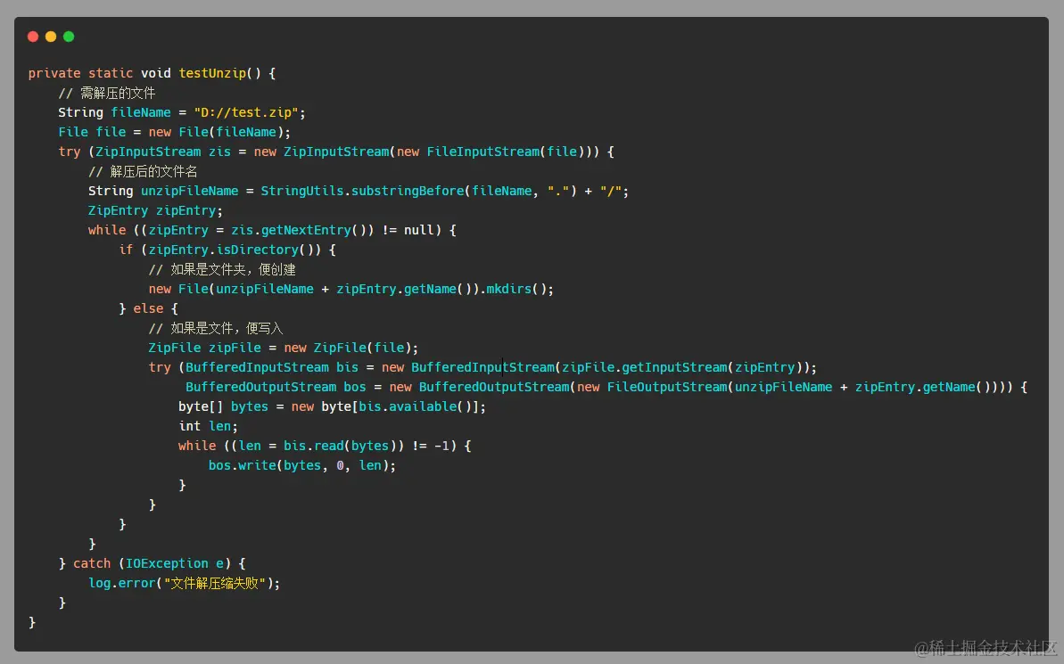 不必被代码长度吓到,认真阅读便会发现解压文件也很简单: