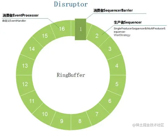 如其名,环形的缓冲区。曾经 RingBuffer 是 Disruptor 中的最主要的对象,但从3.0版本开始,其职责被简化为仅仅负责对通过 Disruptor 进行交换的数据(事件)进行存储和更新。在一些更高级的应用场景中,Ring Buffer 可以由用户的自定义实现来完全替代。