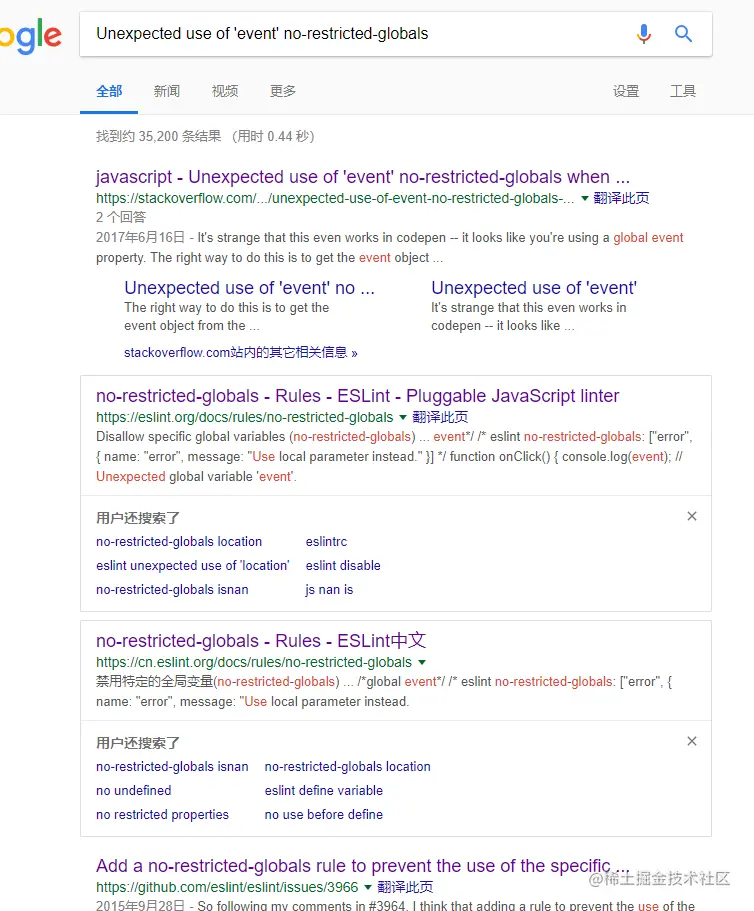 报的错误是:Unexpected use of 'event' no-restricted-globals;