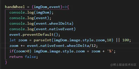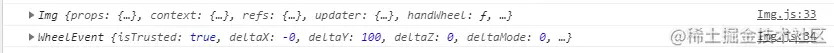然后通过event.antiveEvent就可以访问到Class中的WheelEvent,这样就可以使用滚轮事件了。不过说来也真实蠢,命名Class的log里type前面就有nativeEvent:WheelEvent;但是自己心瞎就是看不到。然后我将event改成了event.nativeEvent就成功了: