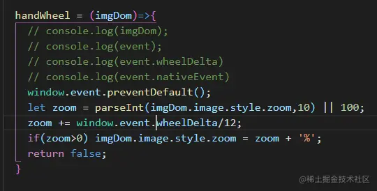通过鼠标的滚动来实现图片的放大和缩小,没错,像我这样不思进取的小白,从来不会自己动手撸一遍。第一时间直接上Google。看到一篇博客 blog.csdn.net/tomcat\_201… 原来是这样实现的。然后自己在草稿上抄了一遍,虽然他的是jq写的,不过大同小异。