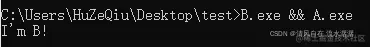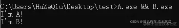 如果输入 A.exe && B.exe,结果如下,这是因为 A.exe 运行结束后正常返回 0 给操作系统,所以就会往下执行 B.exe