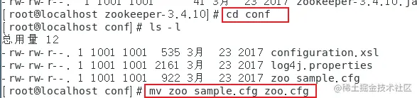 进入 conf 文件下,使用命令将 zoo_sample.cfg 改名为 zoo.cfg
