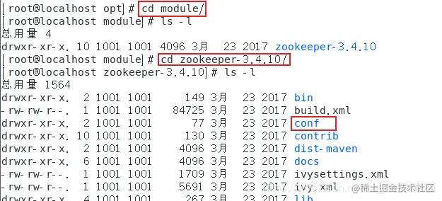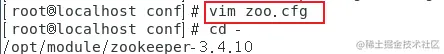 在终端中进入 /opt/module/zookeeper-3.4.10/conf