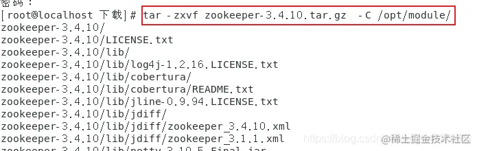 tar -zxvf zookeeper-3.4.10.tar.gz -C /opt/module/
