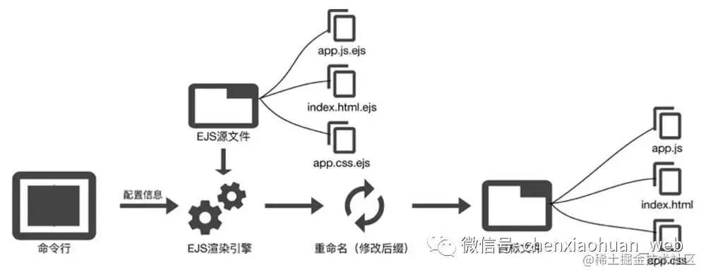 脚手架创建项目文件的第一步是收集用户的配置信息;然后将这些动态的配置信息转化成静态的文件内容,Yeoman默认使用EJS引擎;动态内容转化完成之后,如果有必要,可以将文件后缀类型修改为目标文件后缀类型,比如Yeoman将*.ejs文件后缀修改为*.js、.css、.html等;最后一步便是将生成的文件复制到目标文件夹。