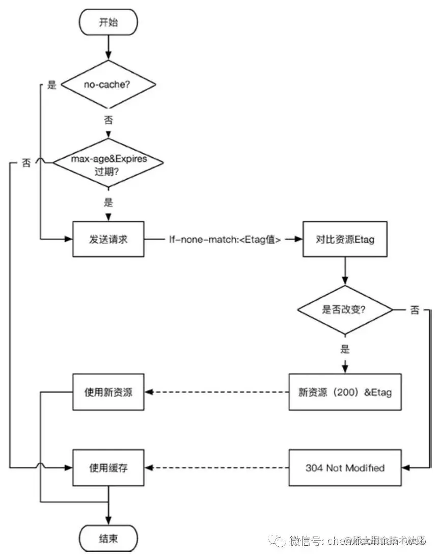 浏览器在Cache-control指定no-cache或者max-age和Expires均过期之后,将Etag值通过If-none-match作为请求首部信息发送给服务器。